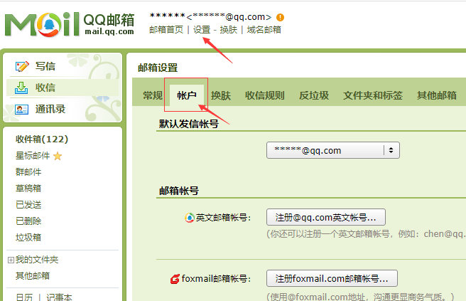 一、开通QQ邮箱的 POP3/SMTP服务 功能,登录邮箱,找到 设置/账户