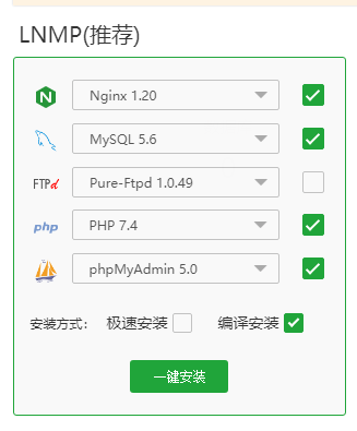 nginx选择默认版本,MySQL5.6,Pure-Ftpd:是ftp软件,可不进行安装,用处不是很多