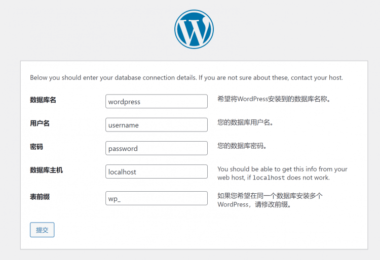 填写并安装WordPress ,安装完成后就可以登录后台进行其它操作了,后台登录地址 域名/wp-login.php